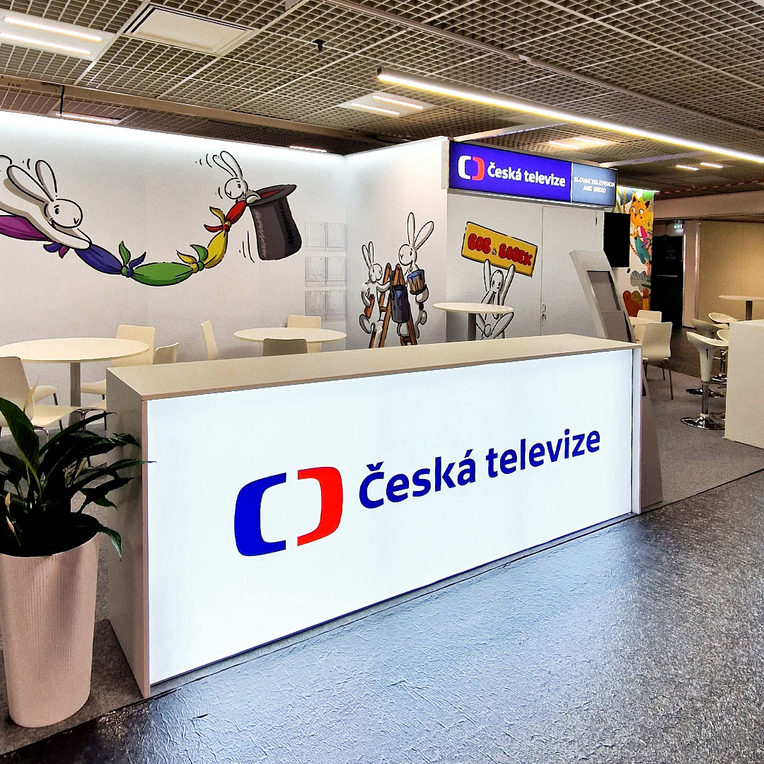 Elegantní 274 cm dlouhý lamino pult s prosvětlenou čelní textilií s libovolným potiskem nabízí praktické řešení pro prezentace, recepce i výstavy.